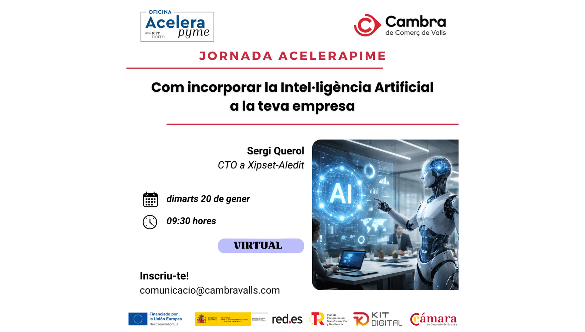Els serveis que t’oferim des de l’Oficina AcceleraPime de la Cambra de Valls són gratuïts i personalitzats, per tu i la teva empresa: